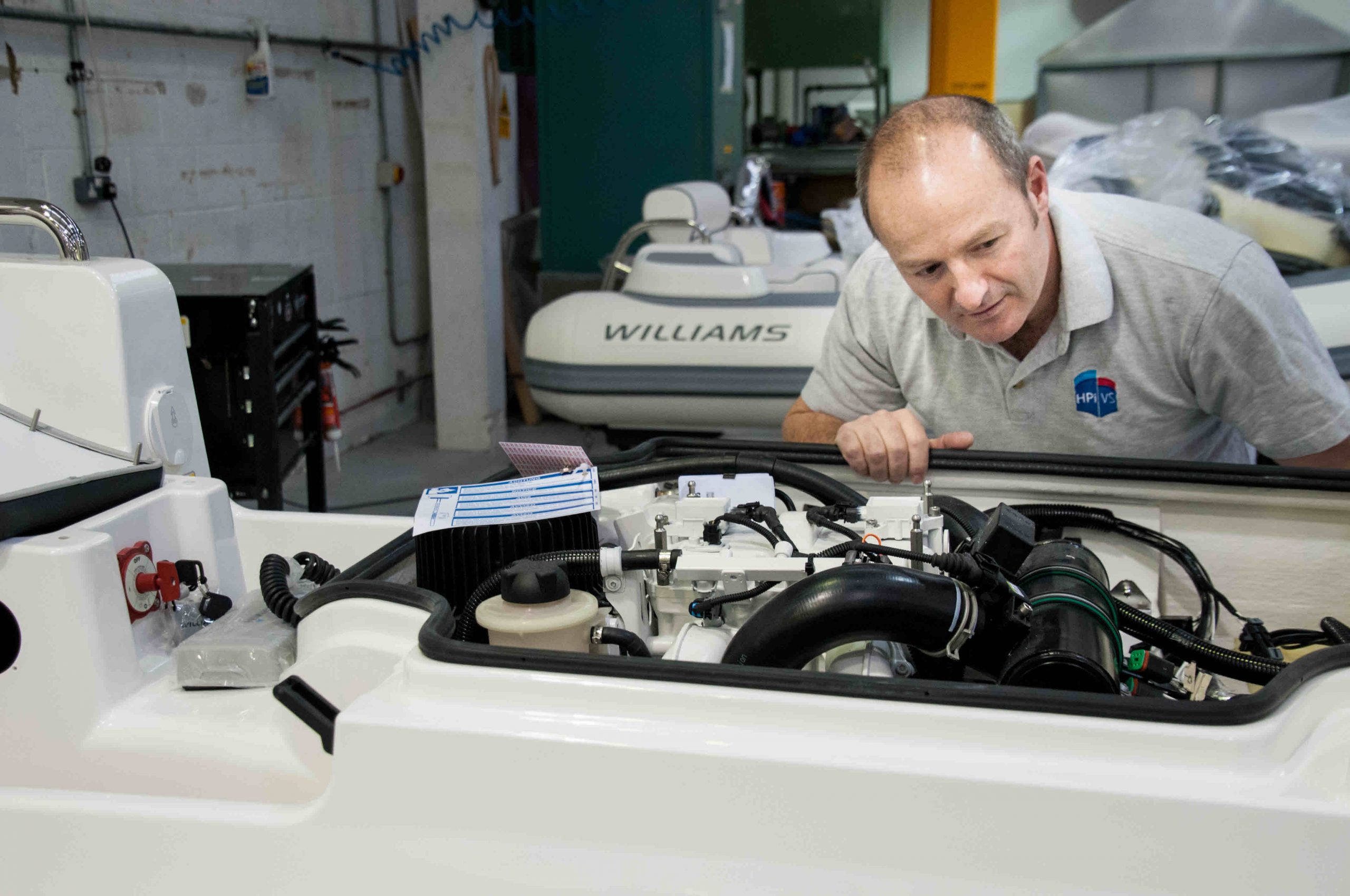 Alasdair Reay inspecting Williams Jet Tender compressed